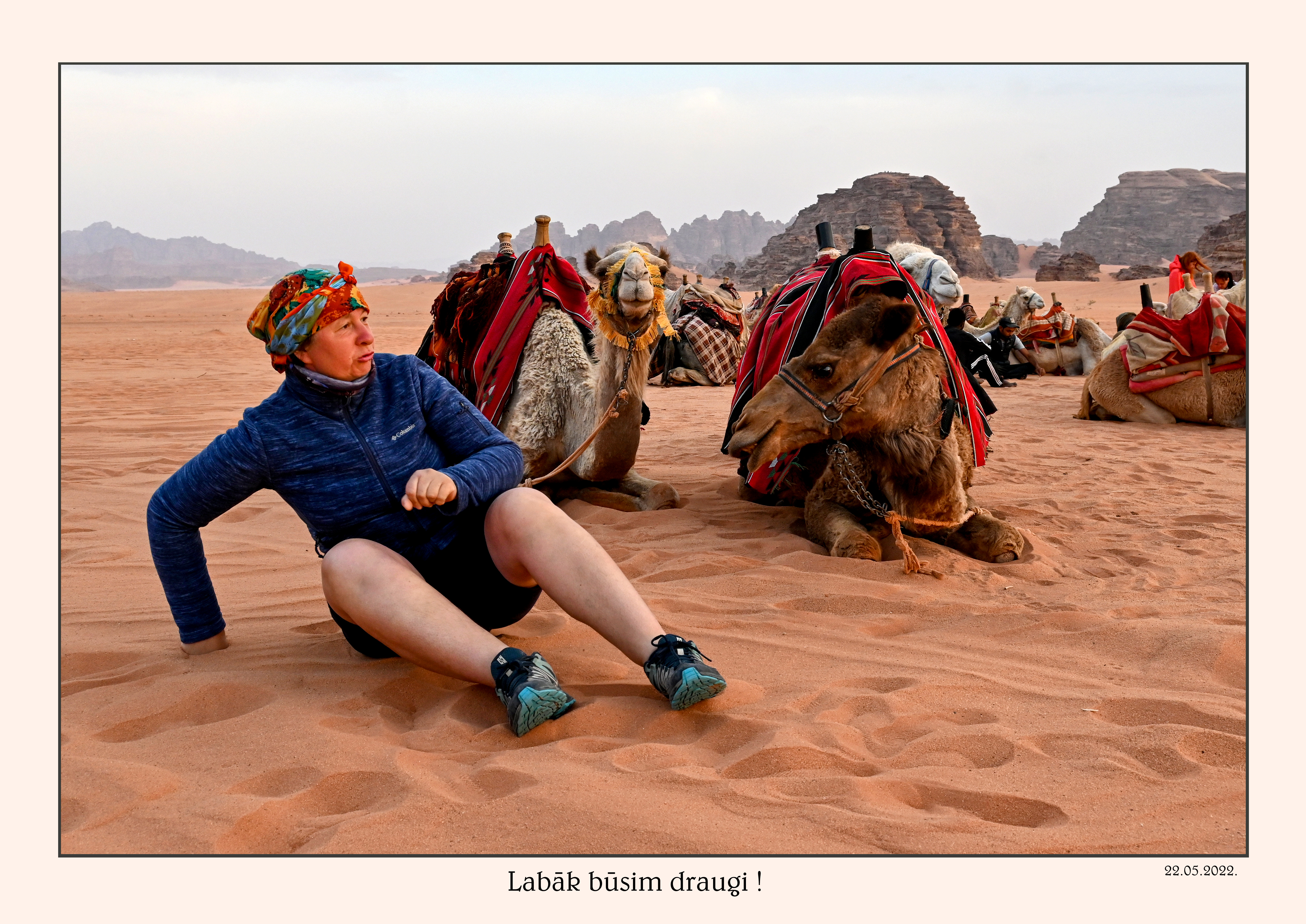 Toties ir bijuši divi citi spilgti momenti ar manu kundzi galvenajā lomā. Kanāriju salās bija krāšņi papagaiļi; teicu sievai, lai paiet tuvāk labākam kadram, bet putns pēkšņi metās viņai virsū! Rezultātā sanāca izcila, nesamākslota un patiesa bilde. Un otrs gadījums – Jordānijā viņai gandrīz iekoda kamielis. Bildē tas izskatās ļoti interesanti – kamielis ar atņirgtiem zobiem. Šo fotogrāfiju es nosaucu: "Labāk būsim draugi".